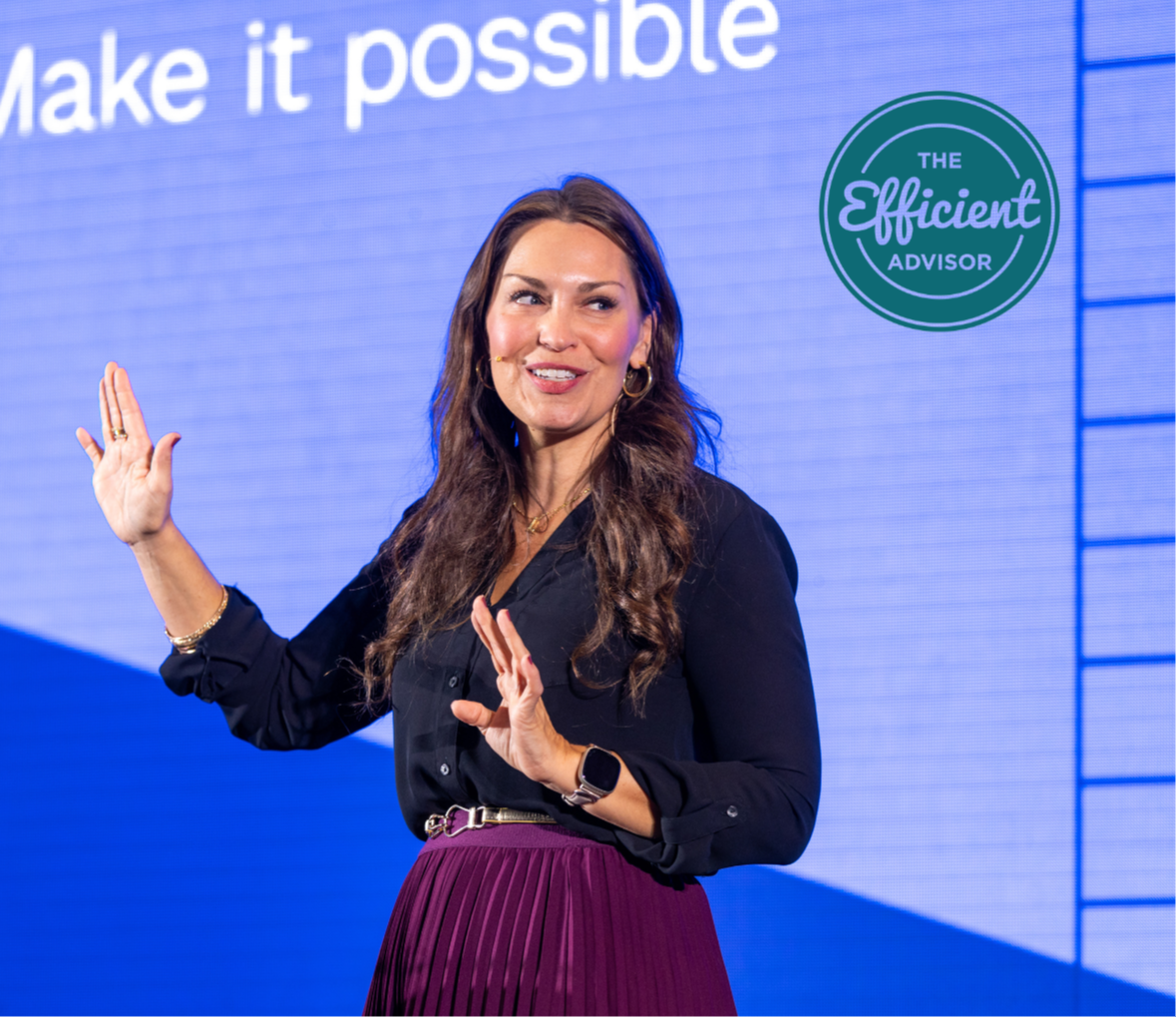 "Libby is a powerhouse speaker and a genius at developing processes and strategies for advisory businesses. Her presentation was impactful, full of implementable solutions, engaging, & game-changing. I would recommend her to audiences that want to take their practice to the next level and don't have the patience or desire to develop a system on their own!"